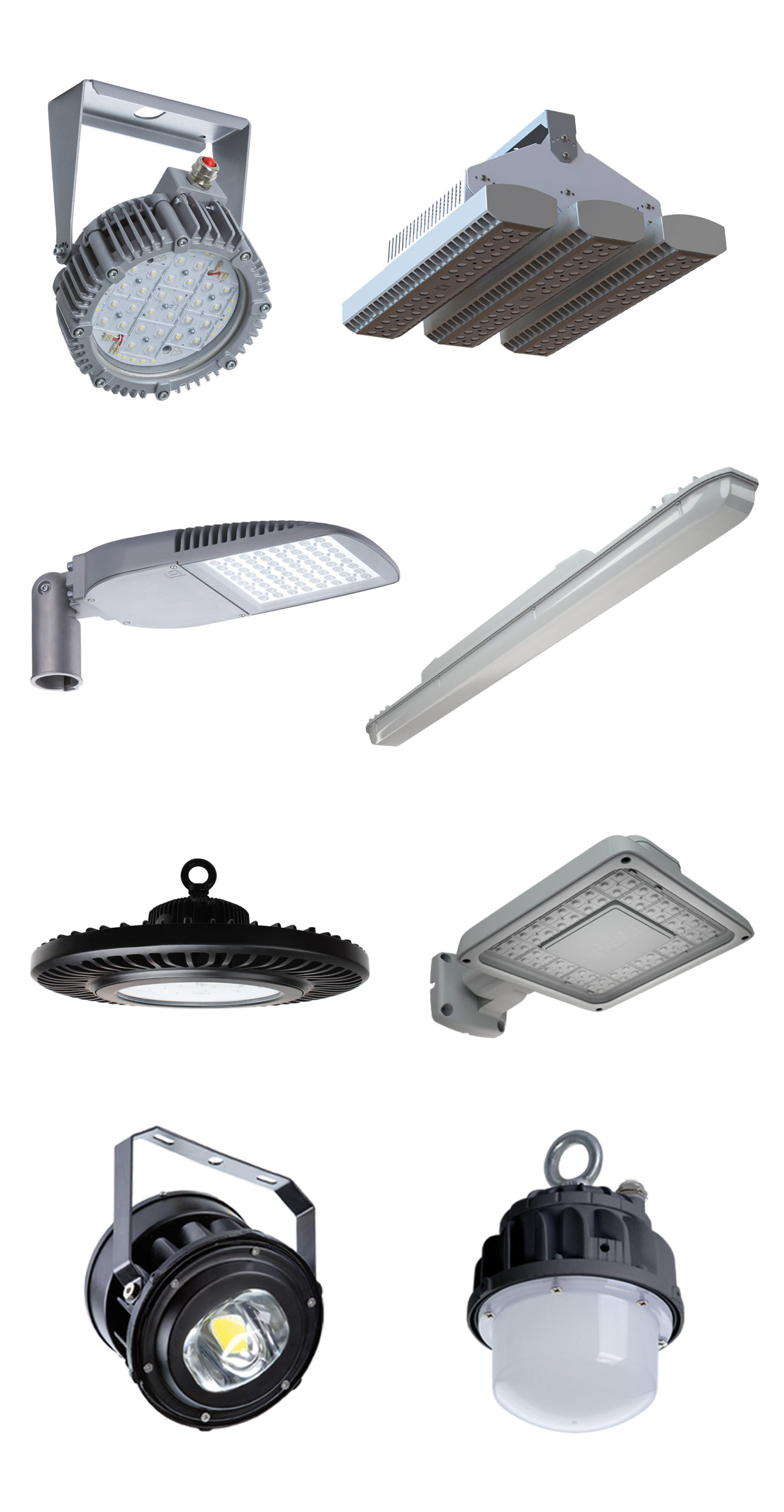 Продуктовая линейка приборов освещения включает в себя светильники для промышленности, взрывозащищенные светодиодные светильники, светильники для газоразрядных ламп, аварийное освещение и др.